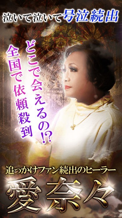 App Storeより引用『今、どこで出会えるの?』全国で依頼殺到。追っかけファンが続出するヒーラー「愛奈々」。全国各地で話題を作り続け、「この人に頼りたい」と噂が殺到する、激レア鑑定をあなたのお手元にてご体験ください。
