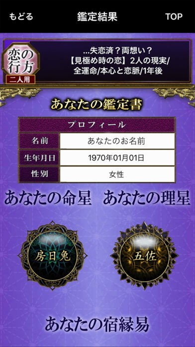 誕生日を入力するだけで占うことができる