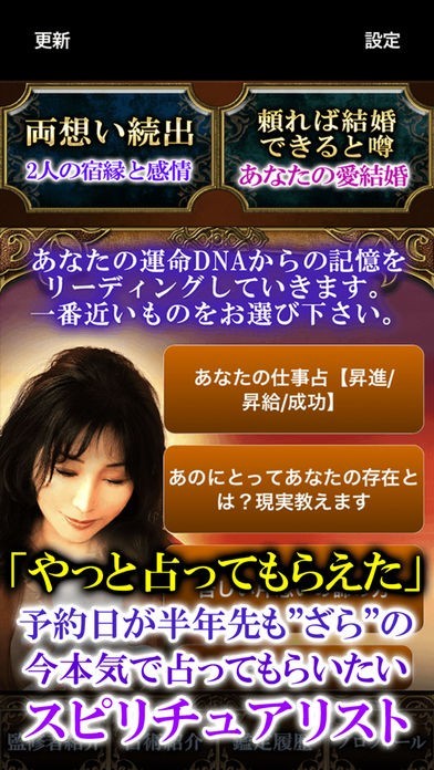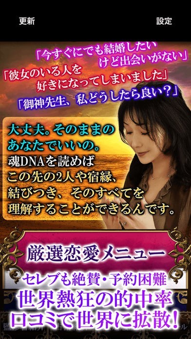 一人から二人用まで豊富なジャンルが鑑定できる占いアプリ「国際スピリチュアリスト【御神吏永の占い】」