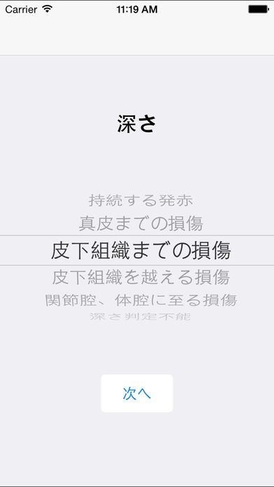 深さは、褥瘡の状態を言葉で表現しているので選びやすくなっています。定規では測定できないため判断が難しいのですが、真皮までの損傷など見た目で判断できるので便利です。