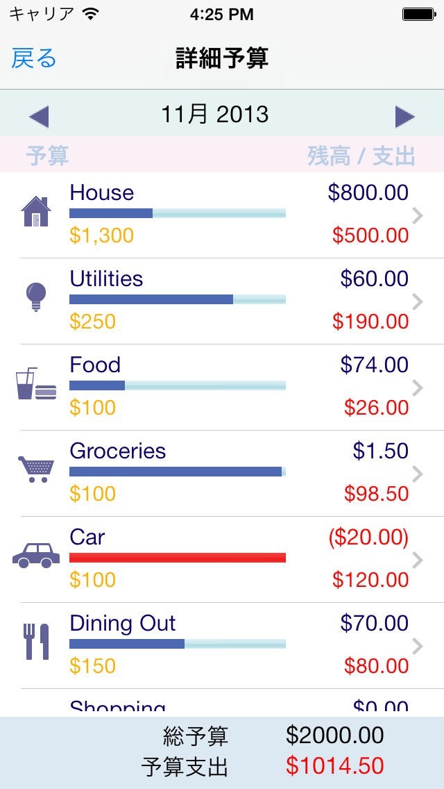 ▸先月の予算に基づいて、新しい月の最初の日に自動的に予算オーバー。