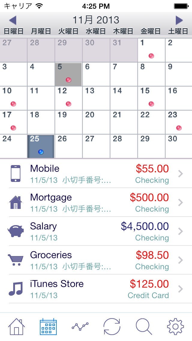 ▸取引のカレンダービュー。