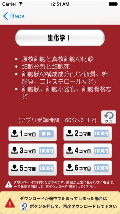 ダウンロードした授業を復元する事が可能なので、デバイスや端末を買い替えた際にも安心ですね。コマ別に授業の動画を購入出来るため、苦手分野だけを克服したい時に便利ですよ。