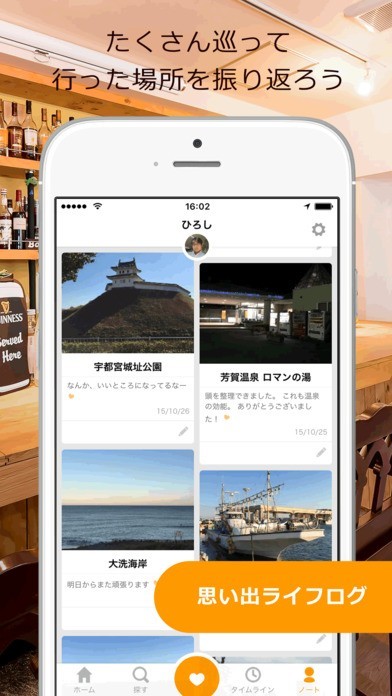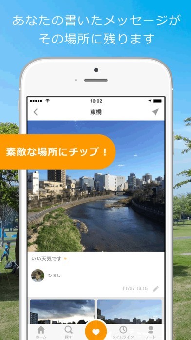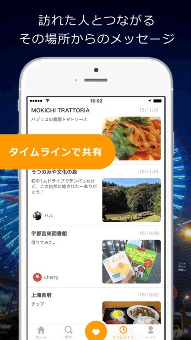 訪れた場所で、感じたことを写真とともにメッセージを残しておくことが出来る