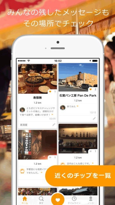 「cocotip」では、訪れた場所で、感じたことを写真とともにメッセージを残しておくことが出来ます。よって、そのことをモチベーションとして旅をするといったこともあるでしょう。 一方、そのようなメッセージを同じ所にいるという条件で受け取ることが出来るので、その方の気持ちを知ることが出来たりさらにコメントをしてコミュニケーションをとることができます。 同じ体験をした仲間として友人になれる可能性は高まることでしょう。 加えて、「タイムライン」によって、過去の出来事を確認することもできます。 また、観光地などで利用すれば、たくさんのメッセージを発見することが出来るので、試してみてはいかがでしょうか。