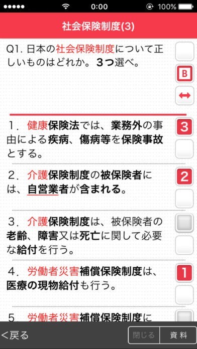 1つ1つの問題に詳細な解説がついているため、理解を深めることが可能です。回答中は資料を参照できるので、適当に答えることもなくなります。重要なポイントは色文字で表示されるため、わかりやすい。資料はいつでも確かめられるので、不明な点があったらすぐに調べましょう。