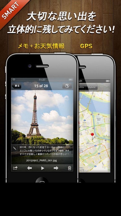 人に見られたくない写真を管理できるので使っています。位置情報を使って地図上にどこで撮った写真か表示してくれるのが便利。