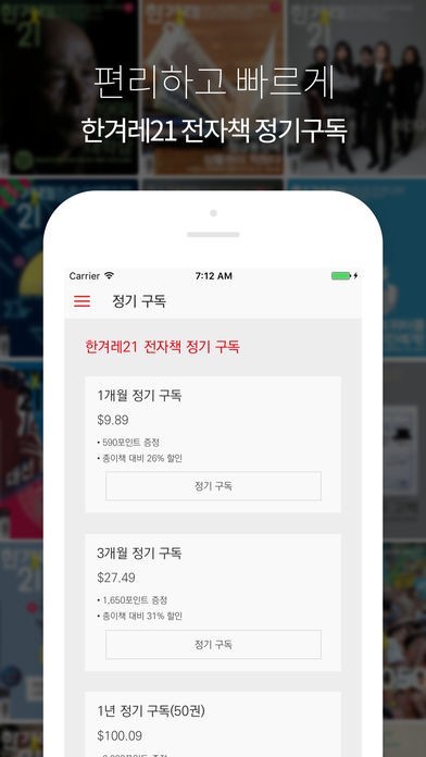 • 한겨레21 정기 구독 1년: 1년 단위 갱신 / US$100.09(대한민국 가격)