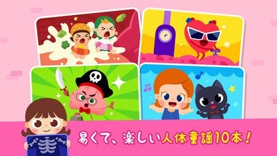 可愛いキャラクター達と一緒に人間の身体の不思議を学ぶことができます。10本の動画と童謡で、目と耳を使って楽しく動揺を学んでいく事ができます。自然に頭に入り、飽きずに続けられます。