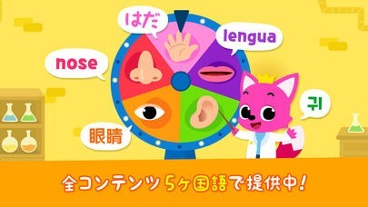 本アプリは、日本語の他にも韓国語、英語、中国語、スペイン語でも遊ぶことが出来ます。日本人以外が遊べるのはもちろん、子供に早いうちから英語教育をと考えておられる親御さんにもピッタリです。