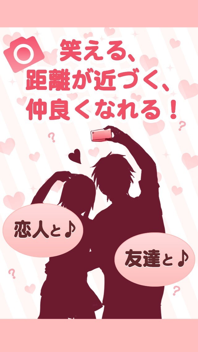 カップルがさらに距離を縮めるための機能が満載! アプリが出すお題に沿ってカップルで写真撮影を行うことで、2人がさらに仲良くなれるユニークなカメラアプリです。 密着しなければ撮影ができない写真や、2人で可愛いポーズを決める写真など、出されるお題は多種多彩。 どうやってお題をクリアしていくかカップルで考えれば、盛り上がること間違いなしとなっています! 写真によって上がっていく達成率や、2人で撮った写真を他人に見せずに保存する秘密のアルバム機能など、もっとイチャイチャしたいカップルに最適なアプリです。