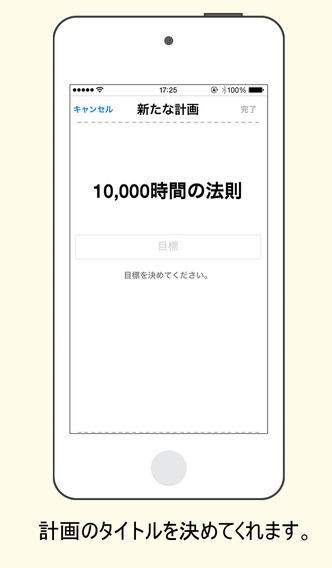 非常に大きな目標を達成するためには時間制限が設けされていなければ途中で挫けてしまうでしょう。本アプリではあえて一万時間と区切ることによってモチベーションを維持しやすい工夫がされています。