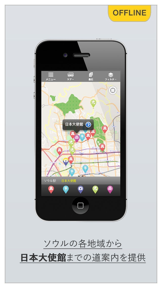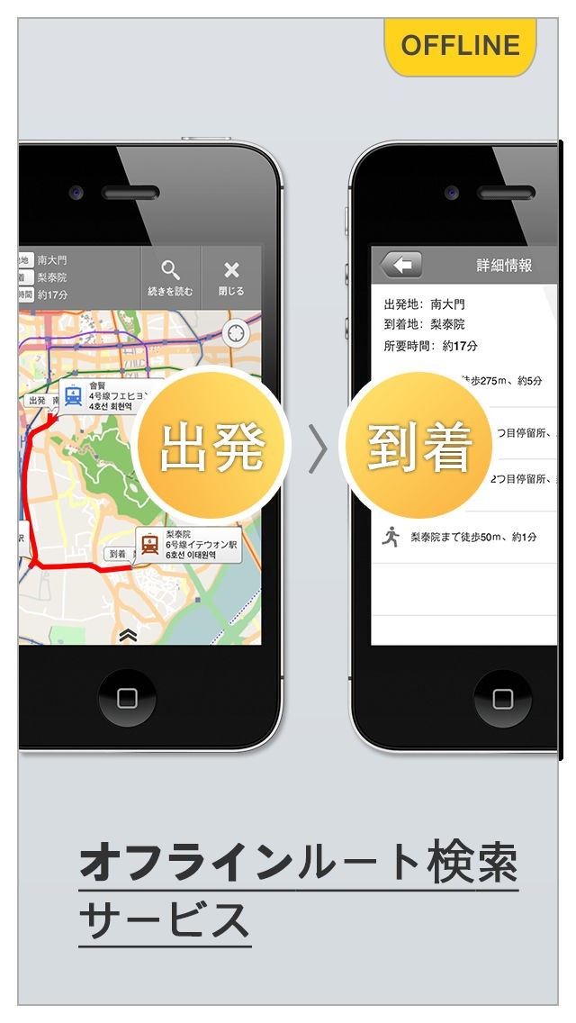 App Storeより引用インターネット接続をしなくても目的の旅行先までの道案内を支援するAPP,ソウルナビ