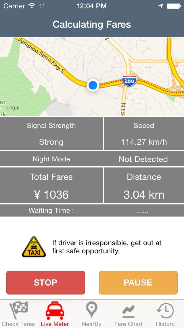 5. App calculates waiting charges like real taxi meter.