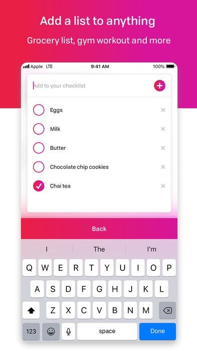 No need to have an app for what you’re doing and another for when you do it. Ellie keeps your grocery list and workout plan all in the same place.