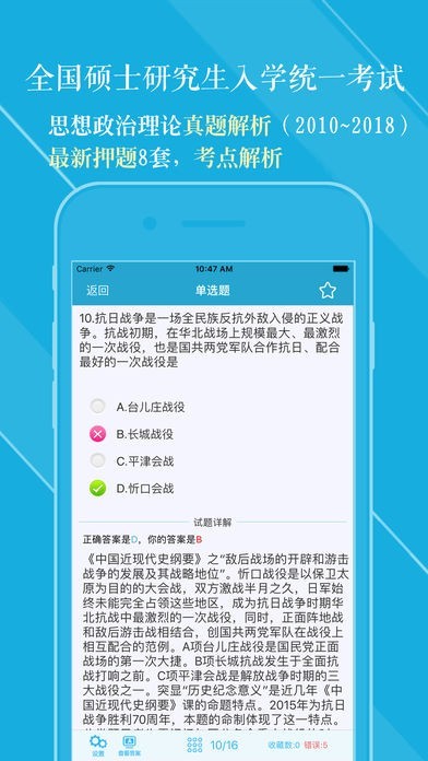 App Storeより引用本软件是全国硕士研究生入学统一考试思想政治理论考试题库软件。为考试的提供了充分的复习准备,可随时随地学习练习,有效帮助顺利通过考试,学习知识通过考试必备神器!