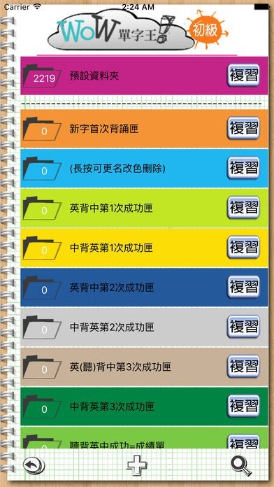 強烈地建議,背單字時,要利用WOW的功能「從英文背單字」、「從中文背單字」、「從聲音背單字」,三者都要用到來複習測試你的單字是否背熟,這樣才叫做基本-