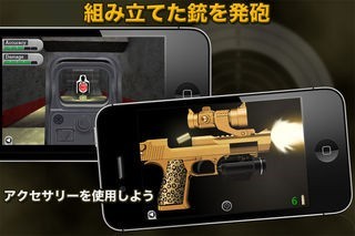 完成した銃はシューティングレンジで試し撃ちすることができます。使っているパーツやアクセサリーによって照準画面などが変化し、リアルなサウンドも楽しむことができます。