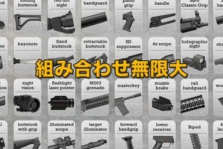 パーツの組み合わせによって数千種類のパターンの銃を作ることができ、さらにアクセサリーも豊富に用意されているので、自分にしか作れない銃を完成させることができます。