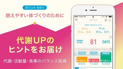 適性「体脂肪率」を導き出し、無理のない食事・運動管理で健康管理をサポート!