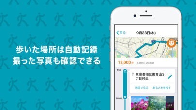 自動記録機能で歩いた距離や消費カロリーを記録!とっておきの散歩スポットはあるメモ機能で他ユーザーと共有!