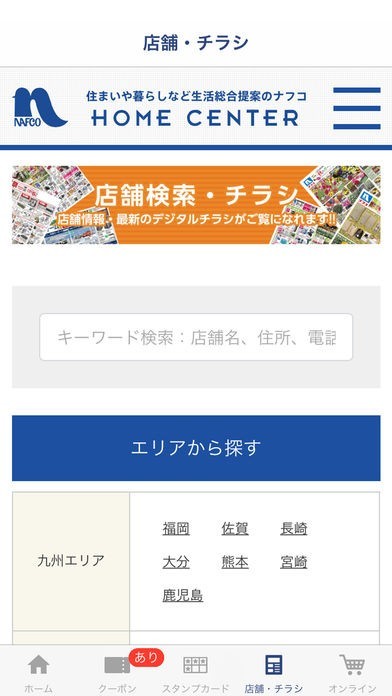 自分が知りたいナフコの店舗のキャンペーン情報屋お買い得情報をいち早く手に入れることができます。チラシをアプリで見られるので、言えにチラシが届かない方も安心です。
