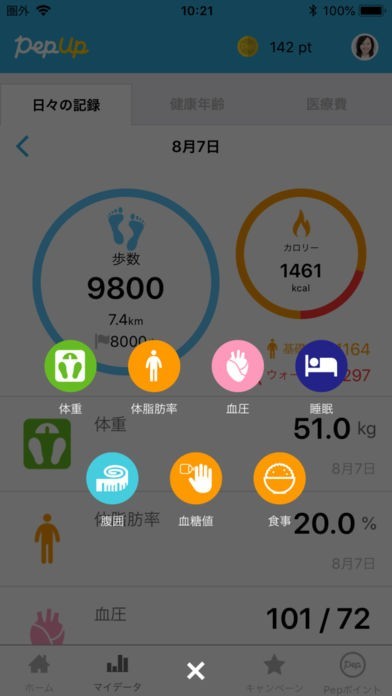 健康になるための習慣作りは途中で挫折してしまうことが多いものです。しかし、本アプリでは体重を測るとポイントが得られたりと些細な習慣であってもご褒美をもらうことができます。