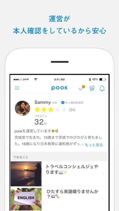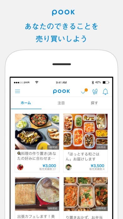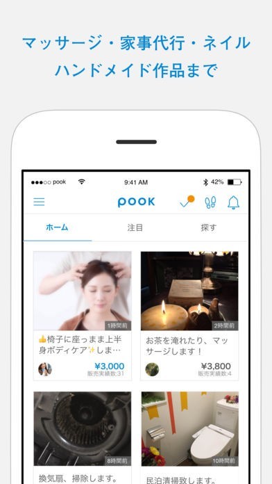 App Storeより引用pook(プック)とは得意や趣味などのできることを売り買いするアプリです。
