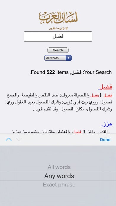 * 3 خيارات في البحث – أي كلمة، جميع الكلمات وبحث متطابق — للوصول إلى الهدف الخاص في ثواني.