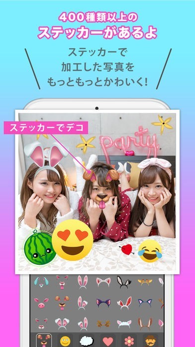 写真をお洒落に仕上げたい女子にも最適。400種類以上のステッカーで写真をデコろう!