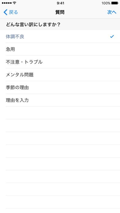 ドタキャンの言い訳(社会人用)のスクリーンショット