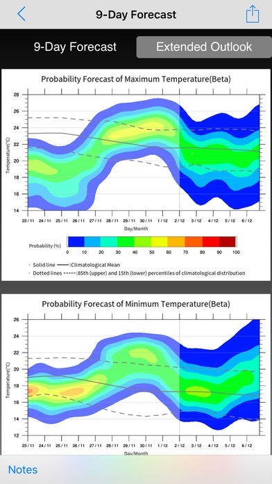 直近の予報以外に長期的な予測を調べられる