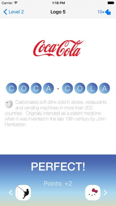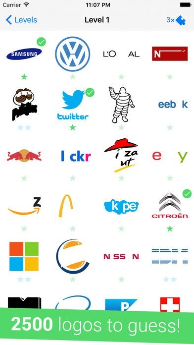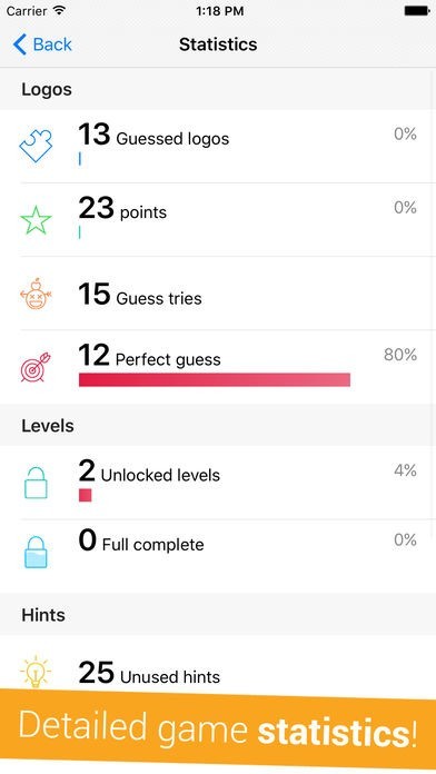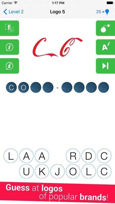 - 役に立つ手がかり!それぞれのロゴは、4のヒントを持っています!新しいヒントが正しい推測のために付与されます。