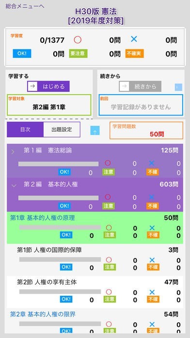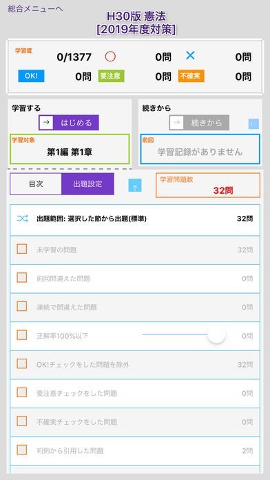これまでの学習の成果を見ることができます。間違っていることが多い部分が何なのか容易に知ることができるので、意識せずに自分の知識が偏ってしまうことを未然に防げます。