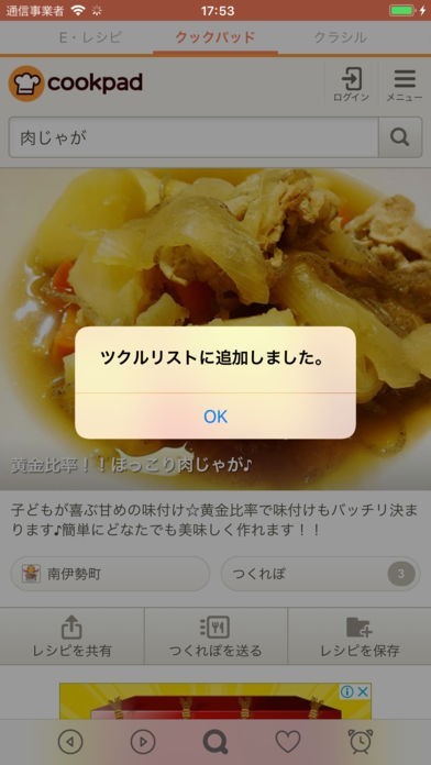 作ってみたいレシピが見つかったら気軽にツクルリストに登録していきましょう。
