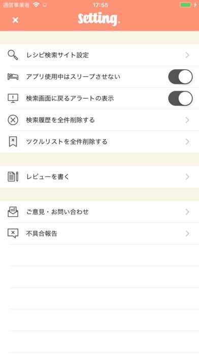 このアプリは複数レシピサイトの一括検索を目的とするアプリであり、このアプリを使用しての各レシピサイト様でのトラブル等には一切の責任を持てませんことを予めご了承ください。