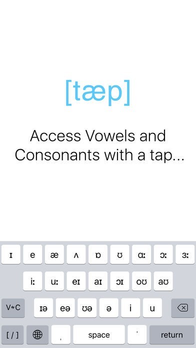 Switch between Vowels and Consonants with a single tap or use the Symbol tab to access additional signs that you'll need for transcribing.