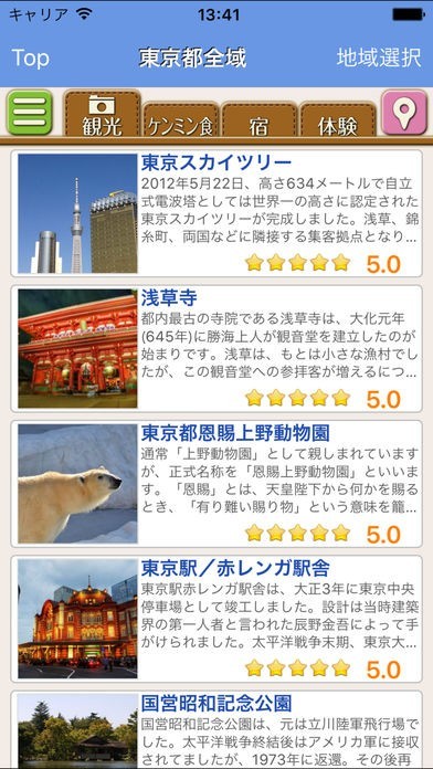 ・観る・食べる・泊まる・体験などの観光スポットの検索やナビゲーションができます。