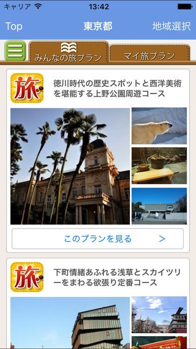 ・モデルコースの検索や、オリジナルプランの作成ができます。