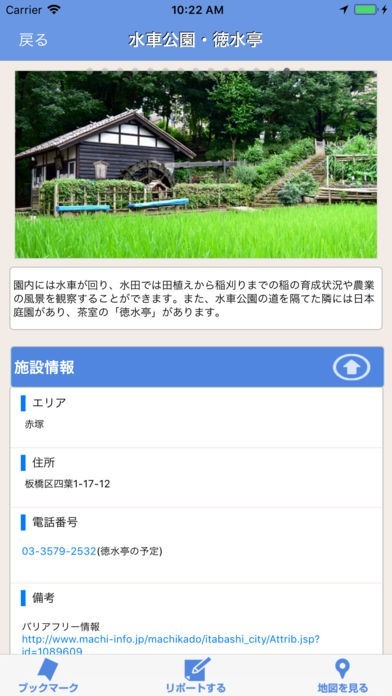 板橋エリアと赤塚エリアについては、おすすめスポットがわかりやすいイラストマップも利用てきます。マップには現在地の表示も可能なので、次に行く場所を決める参考になります。