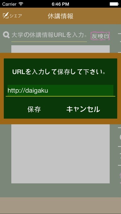 休講情報機能:ご自分の大学の休講情報URLをこのアプリに保存しておくことで、ワンタッチで休講情報へとアクセスできます。