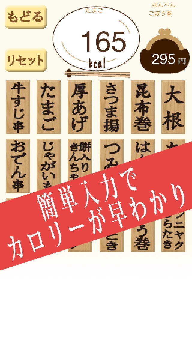 リセットボタンで一括削除!おでんの計算やカロリーを簡単に管理出来る