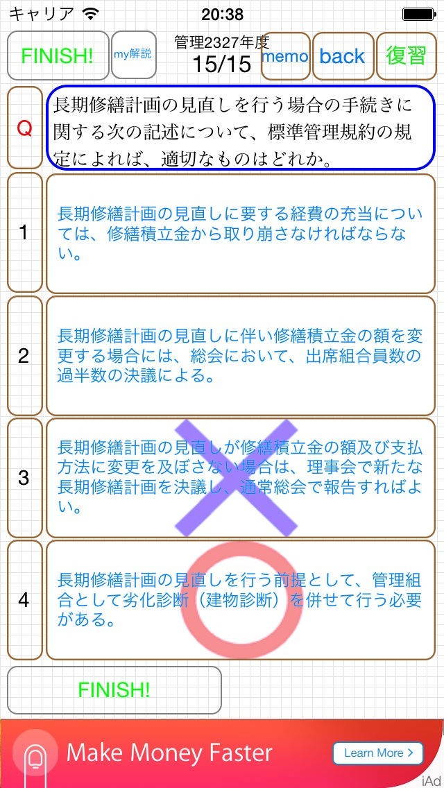 App Storeより引用マンション管理士試験の過去問を集約し、4択問題アプリとしました。