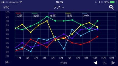 収入やテストの成績、気温などをグラフにすることができます。表での閲覧もできて便利です。