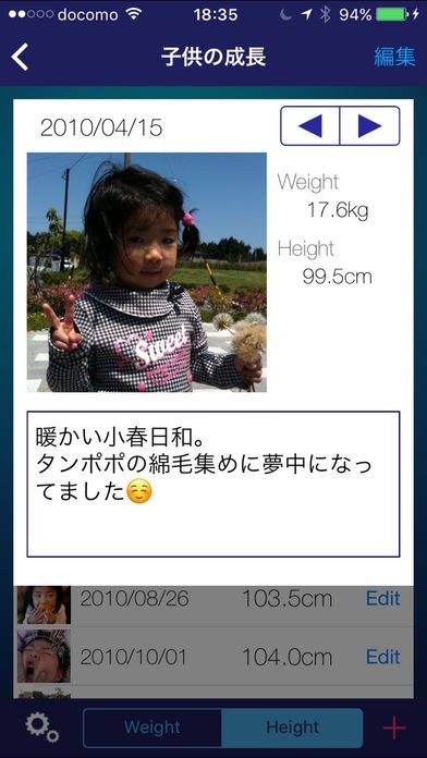 数値と一緒に写真とコメントも記録することが出来るので日記のように使用することも可能です。記録も容量がある限り記録することが出来るので何年間に渡っての記録にもお勧めです。