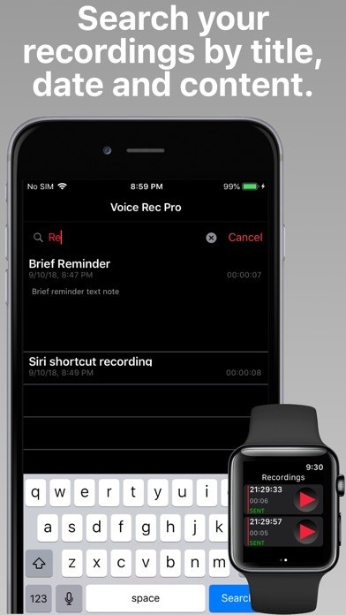 • Auto-sync between your Apple Watch and your iPhone: all recordings you do on your Apple Watch are automatically synced to your iPhone. And you can also sync a recording manually.