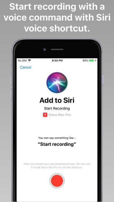 • Upgrade to iOS 12 and watchOS 5, set a custom word and start recording automatically using your voice. Set your custom word inside the app (Settings -> Add to Siri) or go to Settings app, choose Siri -> Add Shorcut.