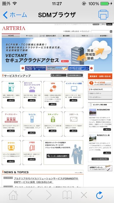 SDMエージェント(VECTANT SDM Agent)はアルテリア・ネットワークスが日本で提供するクラウドサービス「VECTANT SDM」サービスのクライアントアプリケーションです。iOS7のiPhone/iPadで動作します。