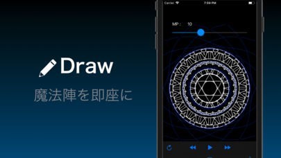 指一本で美しい様々な幾何学の魔法陣を作ることができます。練習をすれば魔法を唱える能力が身につくかもしれません!指でなぞって魔法陣を描く快感にハマる人続出中です。書き直しもできる機能もあるので失敗しても何度も挑戦できます。