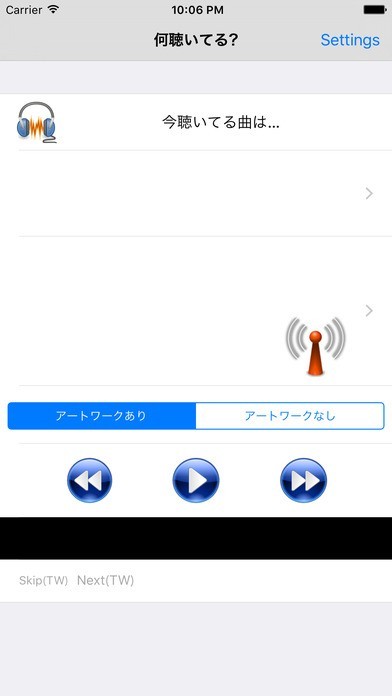 何聴いてる?は、Twitterに聴いている曲を簡単に投稿できます。友達に聴いて欲しいなと思う曲が見つかった時など便利です。再生中にアンテナボタンからTwitterやFacebookをタップするだけで、投稿が完了します。